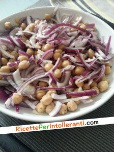 3. Mettete un filo d’olio in una ciotola, unite i ceci e la cipolla.