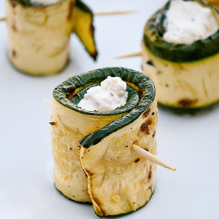 3. Una volta pronto il composto, prendete le zucchine e stendetele su un tagliere. Cospargetele fino a metà e arrotolate. Chiudete con uno stuzzicadenti.