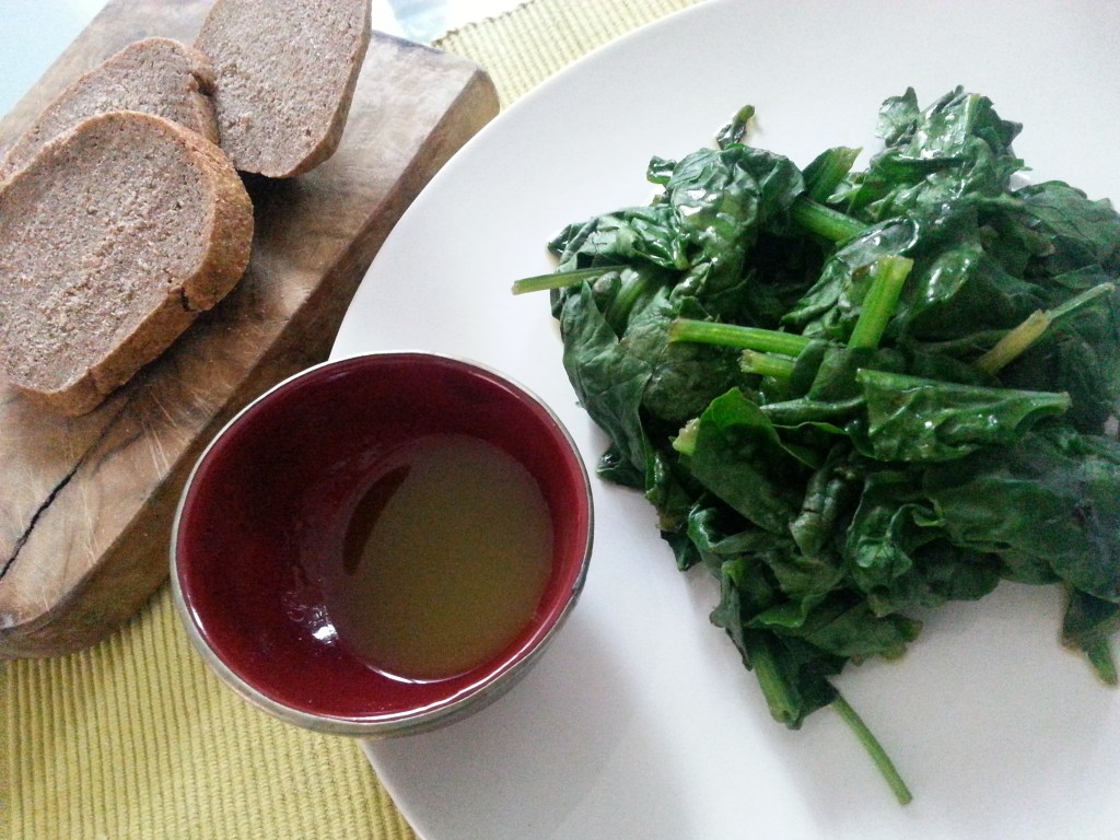 4. Non resta che impiattare mettendo il pane, gli spinaci e la salsina.