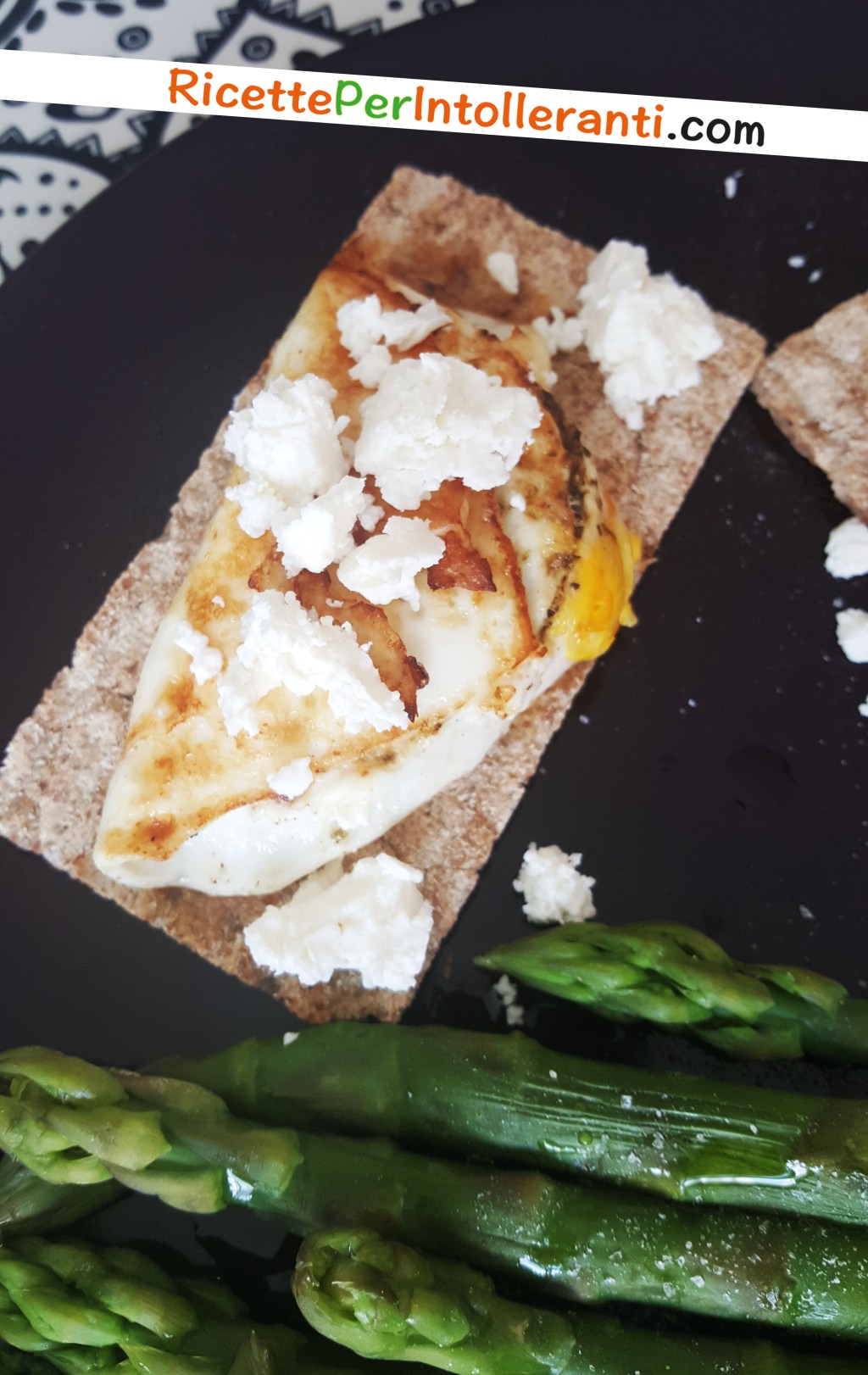 3. Infine impiattate con una fetta di pane (io ho usato un WASA) su cui porrete l’uovo e la feta sbriciolata.