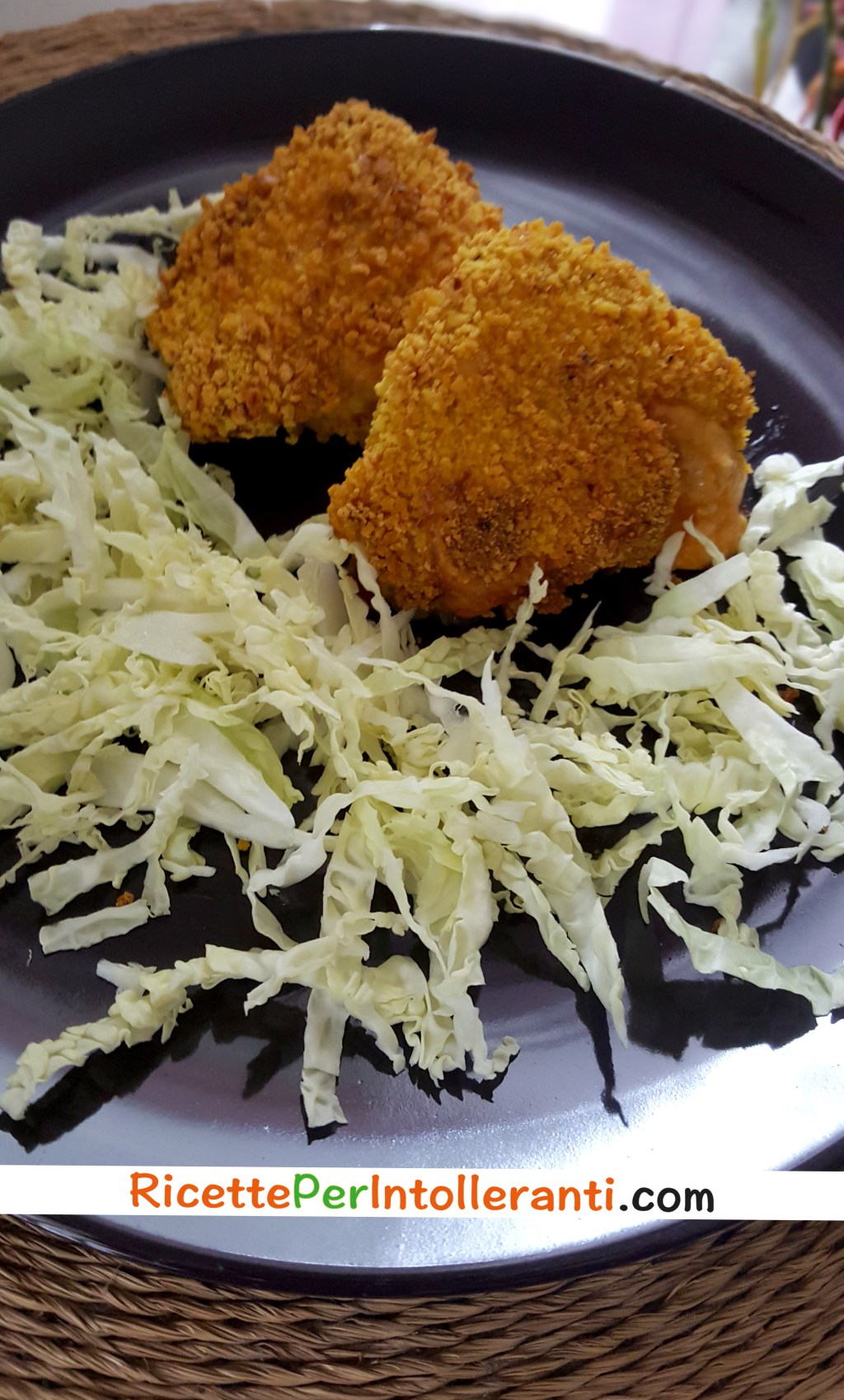 INGREDIENTI: 3 persone 400 gr di Fette di Pollo sottili 100 gr di Prosciutto Cotto 100 gr ca di Emmenthal 2 uova 2 cucchiai di Timo Panatura 1 Limone Sale Pepe DIFFICOLTA’: facile TEMPO: 40-45 min CALORIE A PORZIONE: 300 KCal ca