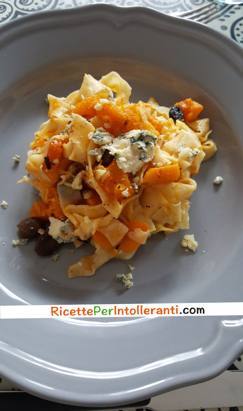 8. Aggiungete il burro nella padella della zucca. Scolate le tagliatelle con la schiumarola. Saltatele, aggiungete le olive, lo stilton, aggiungete una grattugiata di parmigiano e servite.