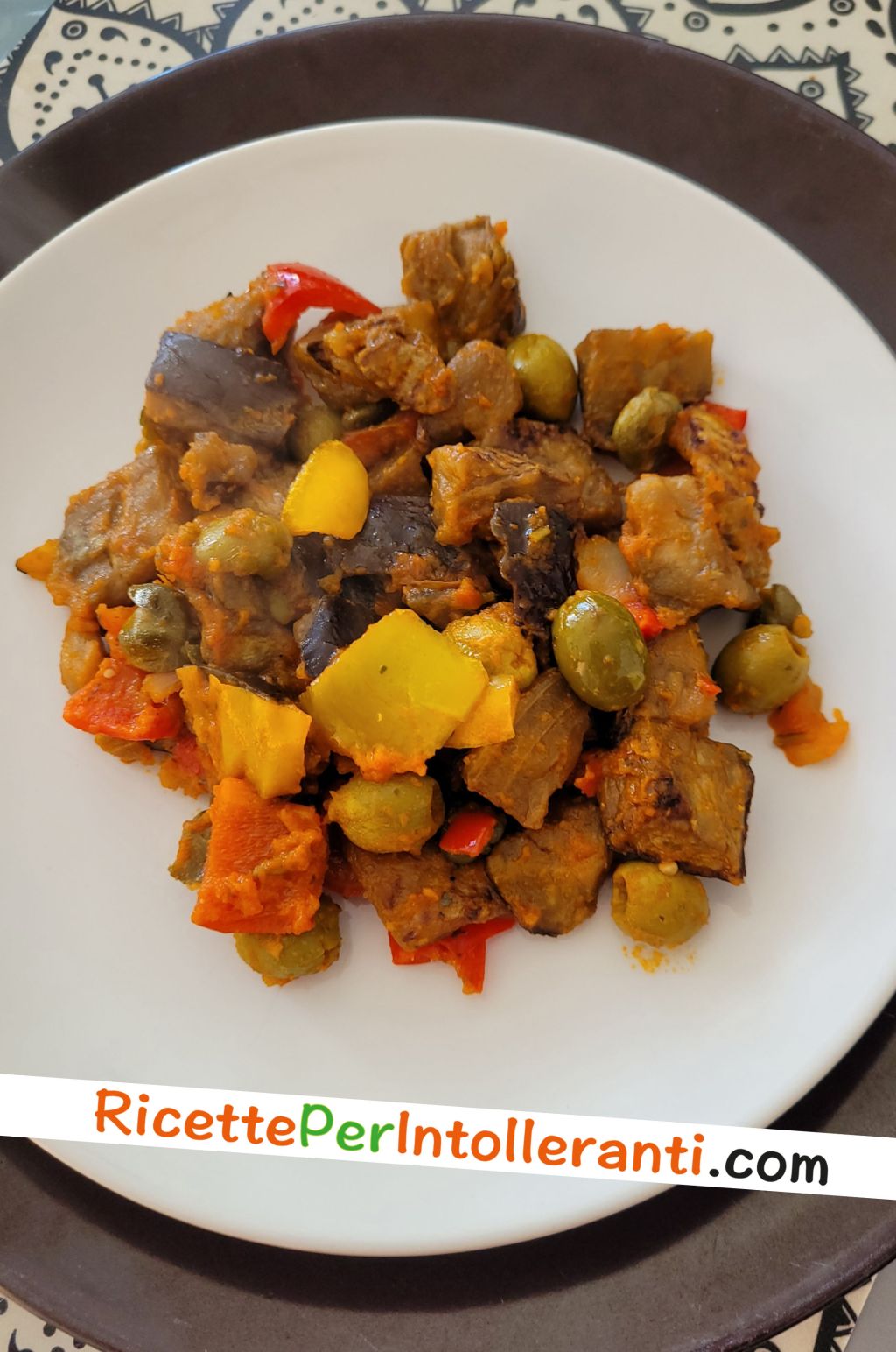 2. Mettiamo in un tegame un filo d’olio e facciamo rosolare le verdure iniziando con: peperoni, pomodori, carote e melanzana. Poi uniamo sedano, cipolla e le spezie.