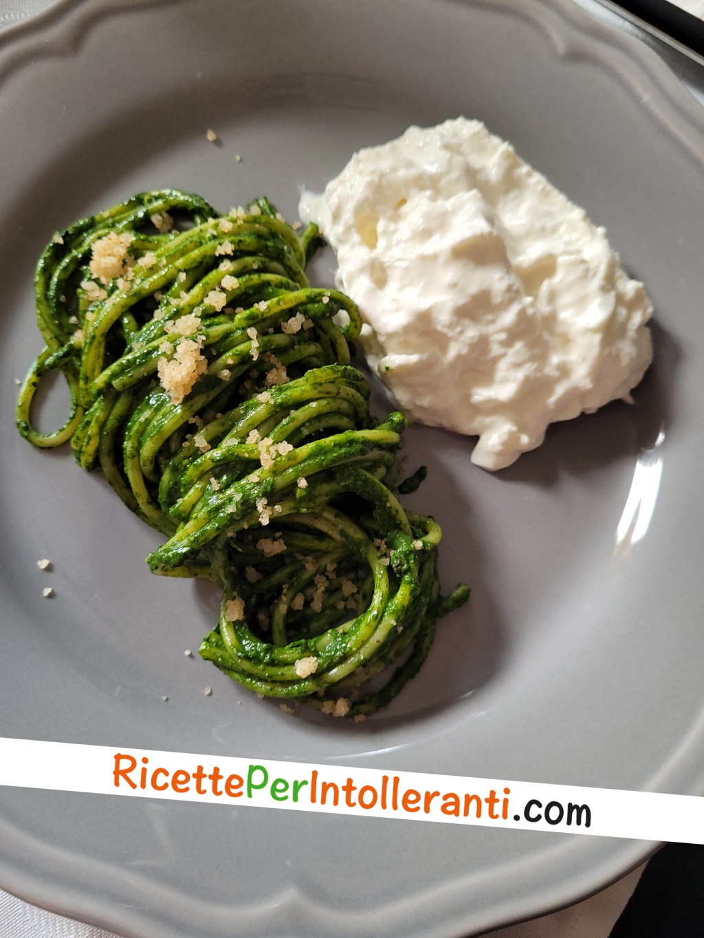 4. Buttate la pasta, salate e cuocete in base al tempo di cottura indicato dalla confezione. Scolatela e conditela con il pesto. Impiattate con la stracciatella o burratina, e buon appetito!