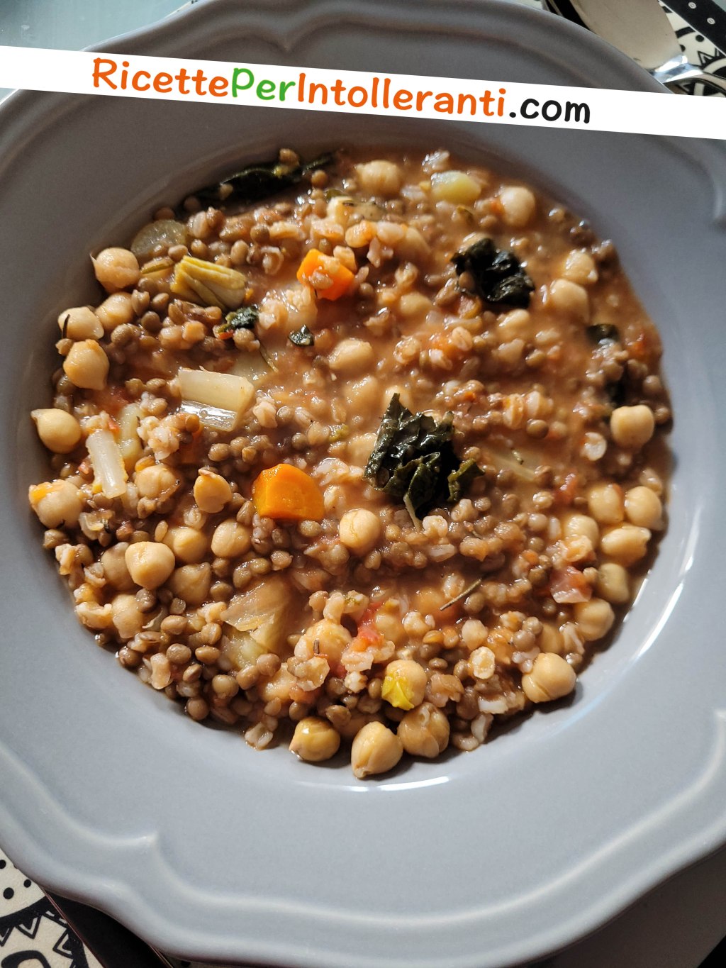 3. Prendete una pentola e versate un filo di olio, fate rosolare una cipolla, quindi unite i legumi, le verdure a tocchetti, il rosmarino e coprite con brodo vegetale caldo.