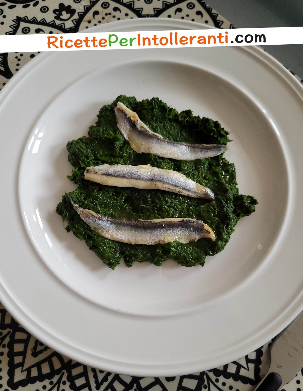 4. Passate al minipimer per renderlo cremoso aiutandovi con un po’ di acqua. Non resta che impiattare spalmando il cavolo nero sul piatto e adagiandoci sopra le alici.