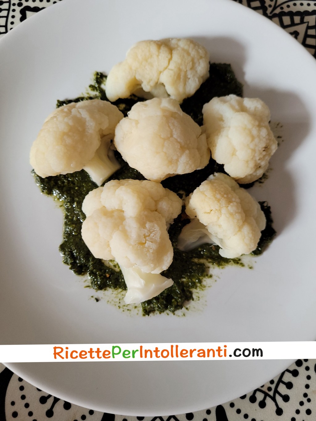 6. Adesso impiattate con il pesto sul fondo e il cavolfiore sopra.
