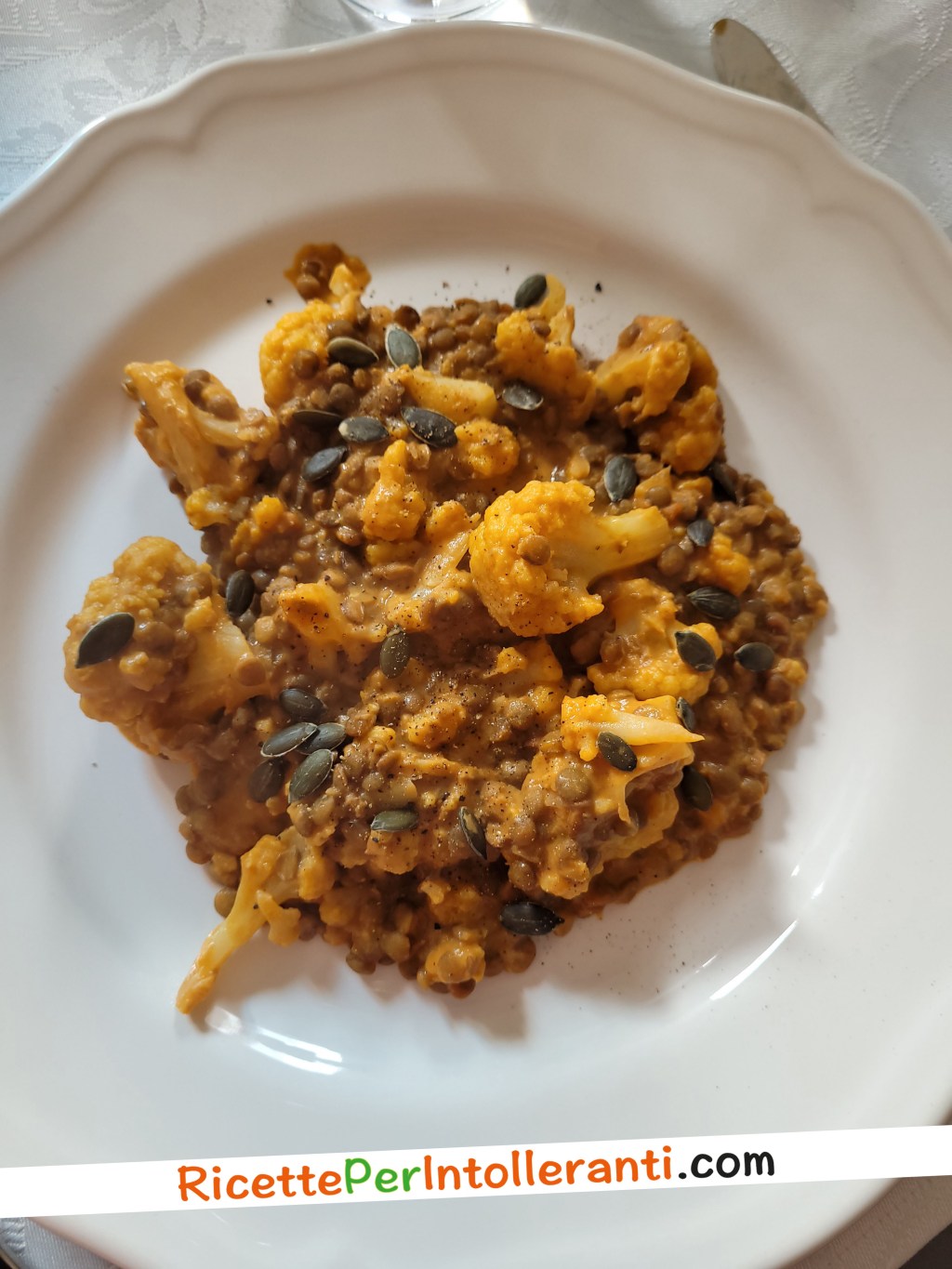 1. Mettete le lenticchie in ammollo come indicato dalla confezione. Se sono di quelle già pronte all’uso, lavatele sotto l’acqua corrente. Lavate e tagliate a pezzetti il cavolfiore.